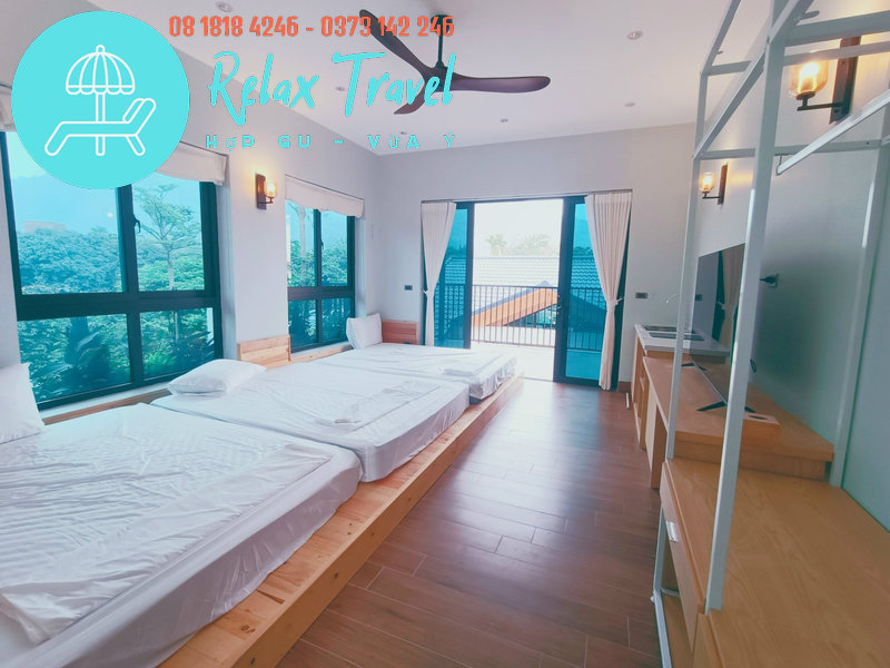 • Tầng 2: 2 phòng tập thể (mỗi phòng 3 giường đôi, Tivi, bếp từ, vòi nước, NVS riêng)