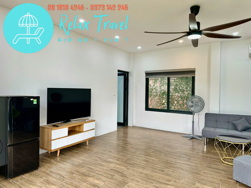 ✅ Khu vực không gian sinh hoạt chung rộng 140m2 với Smart TV, tủ lạnh, điều hòa, quạt mát