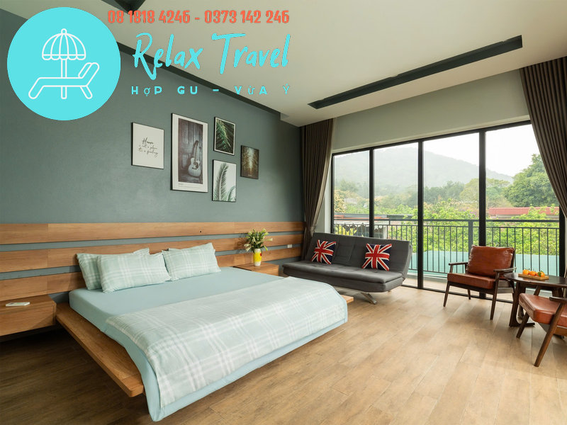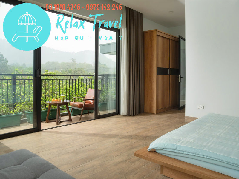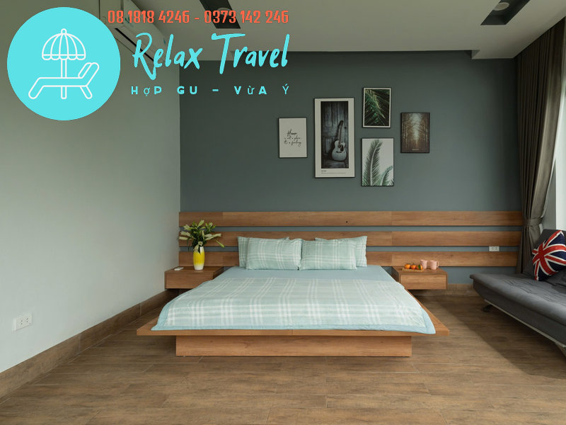 – 1 phòng: giường 1m8 x 2m + 1 sofa bed