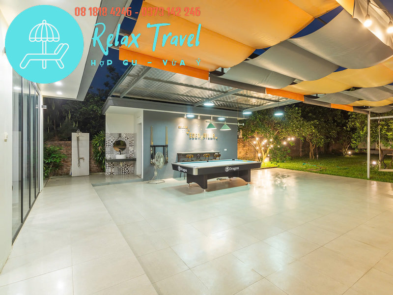 📌 Sảnh rộng: Để bàn Bi-a, view nhìn ra bể bơi, sân vườn