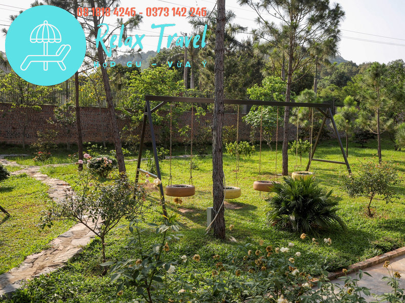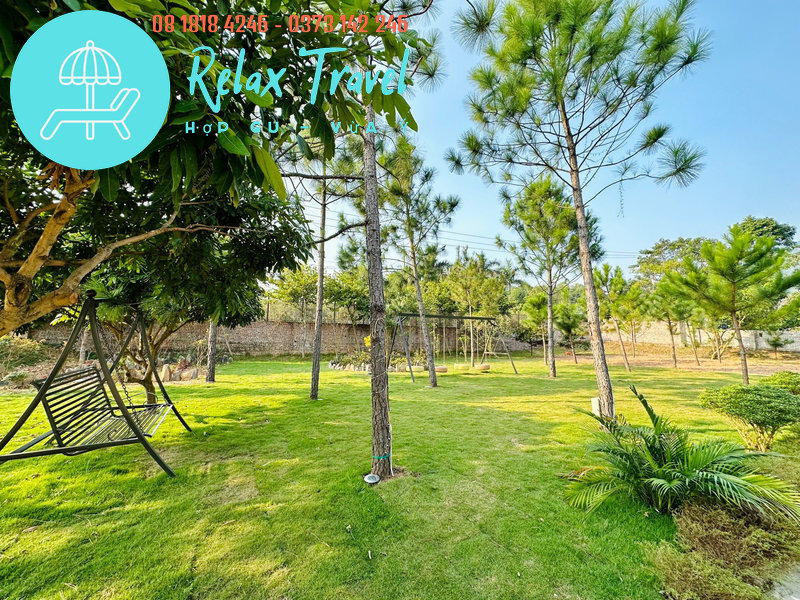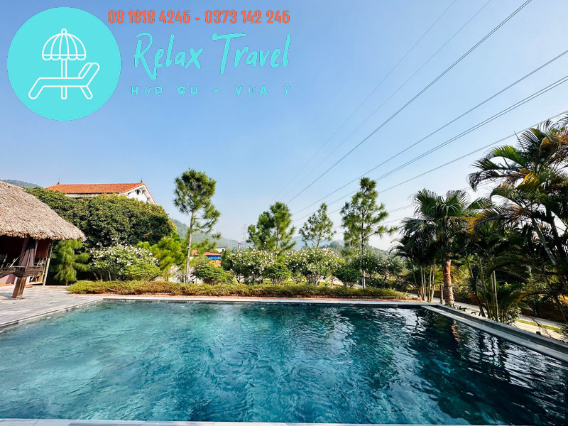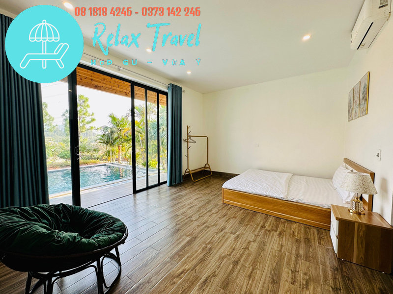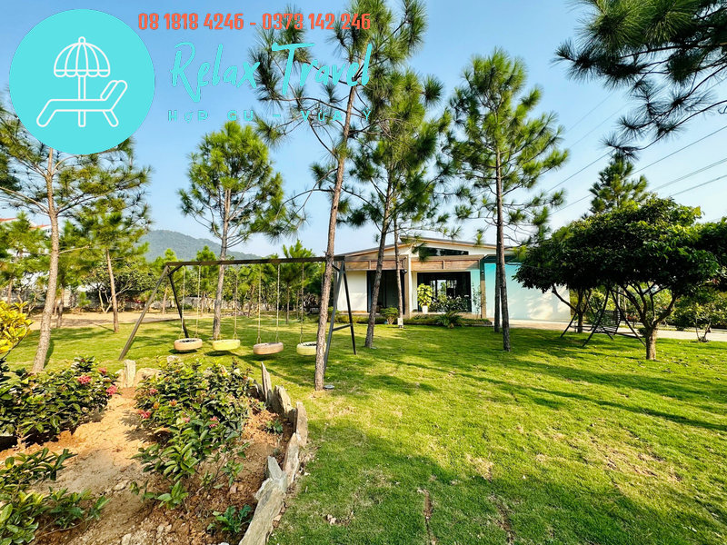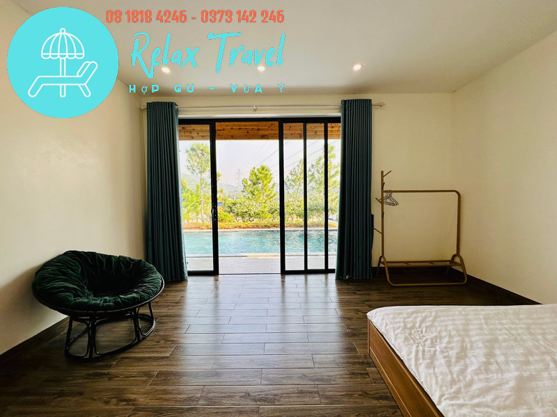 Villa nằm trong khuôn viên rộng 3.000m², diện tích nhà 200m², có bể bơi riêng, view rừng núi xanh mát.