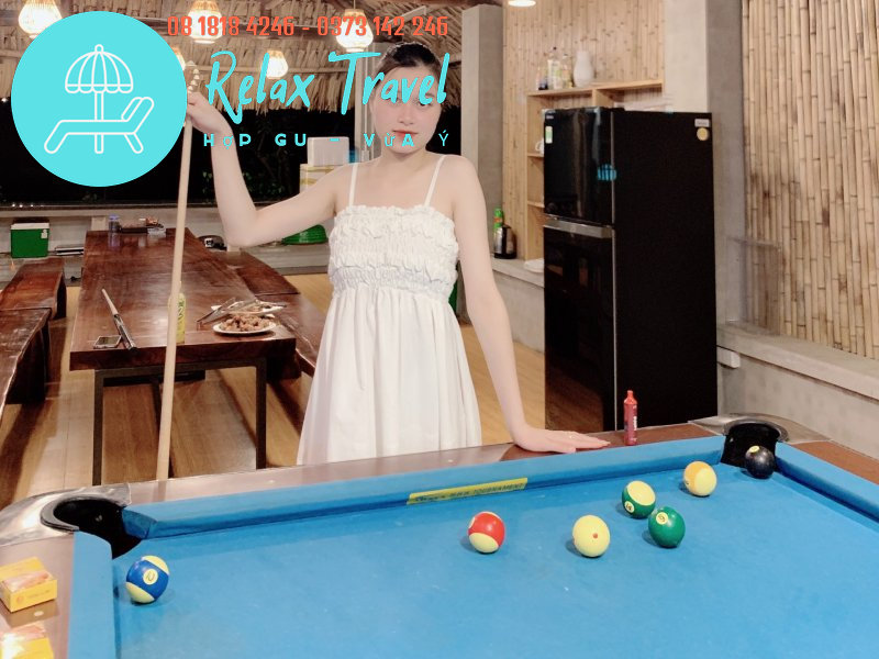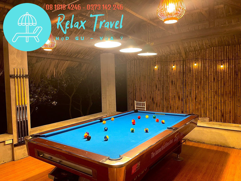 🌲 Bàn Bi-a: View nhìn ra bể bơi và sân vườn