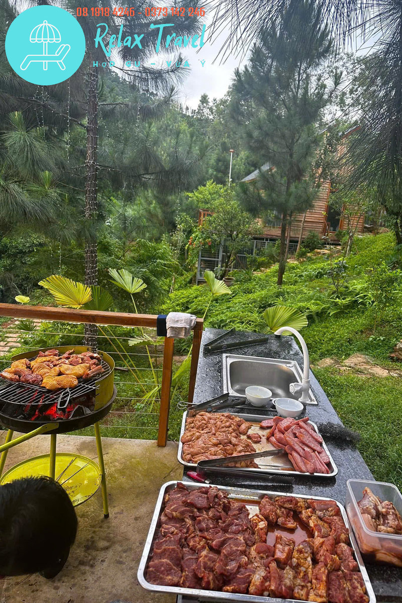 🔥 Khu bếp BBQ/lẩu ngoài trời – đầy đủ bát đũa, gia vị cơ bản