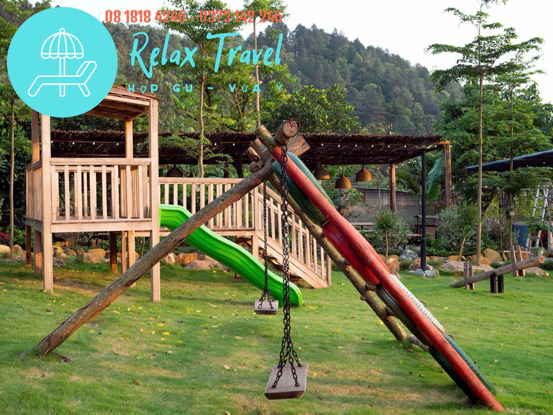 Khu vui chơi trẻ em: xích đu, cầu trượt, bập bênh